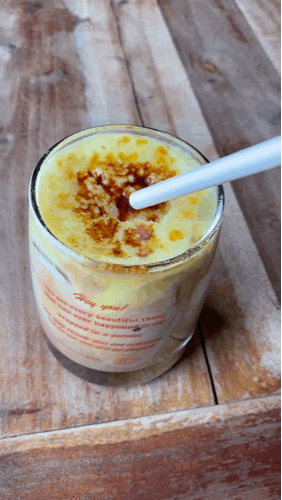 이 라떼 위에는 크림브륄레처럼 설탕을 토치질해서
