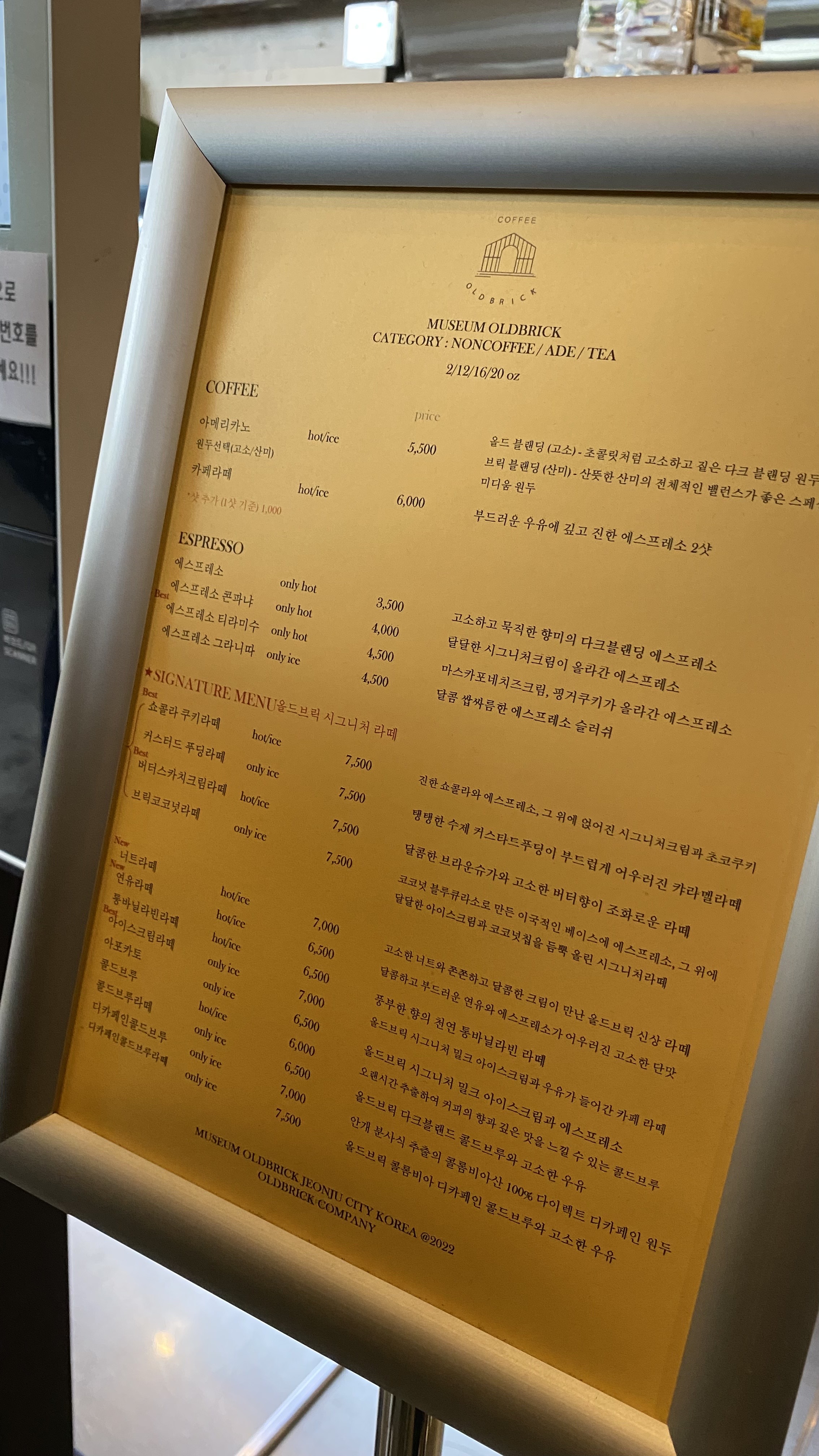 이렇게 올드브릭의 메뉴판이 따로 입간판처럼 세워져있고