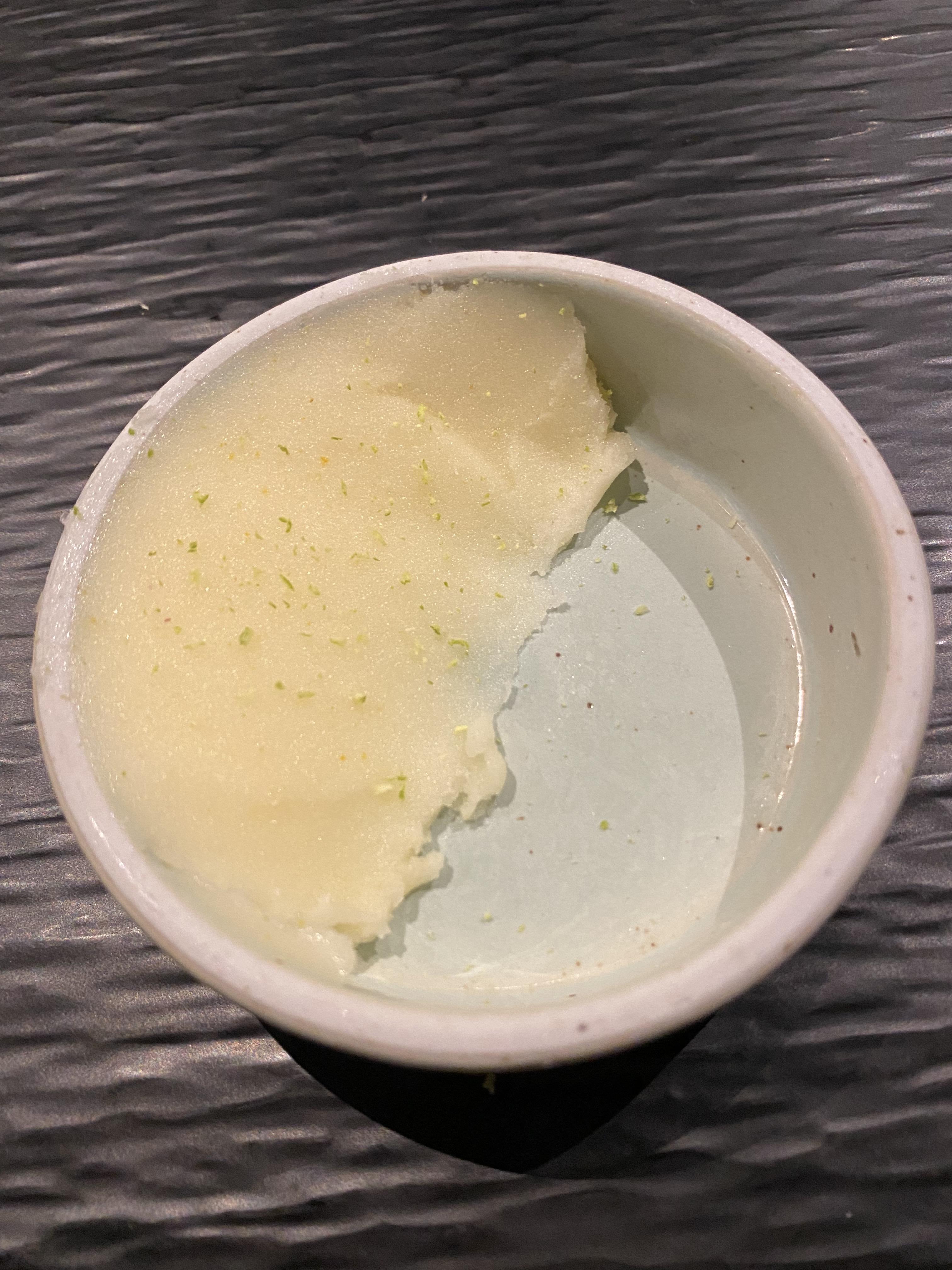 두 번째로 나온 건 과일, 하몽이 들어간 우유 셔벗이에요