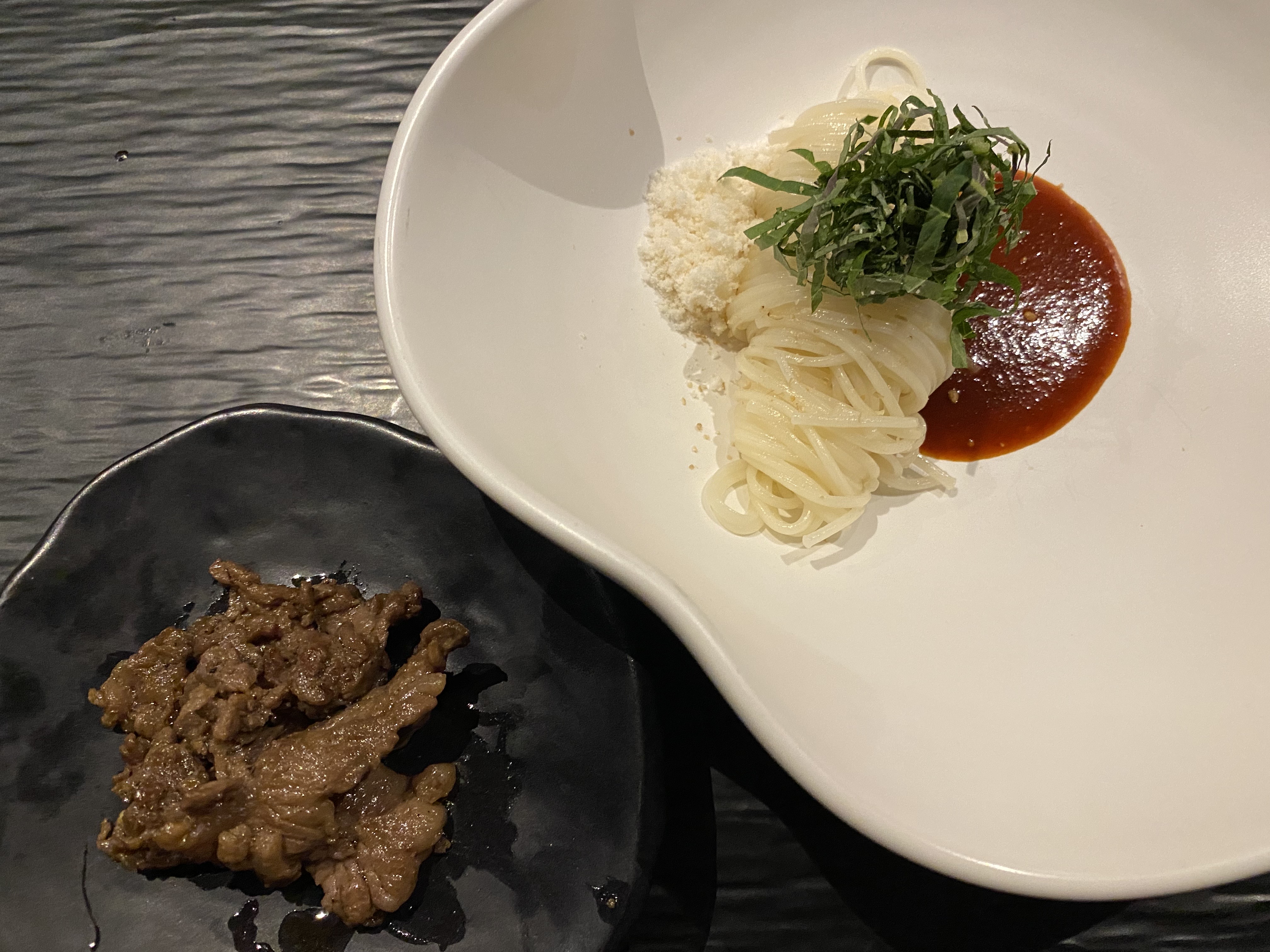 찬 음식으로 육회가 먼저 나온 것 같아요