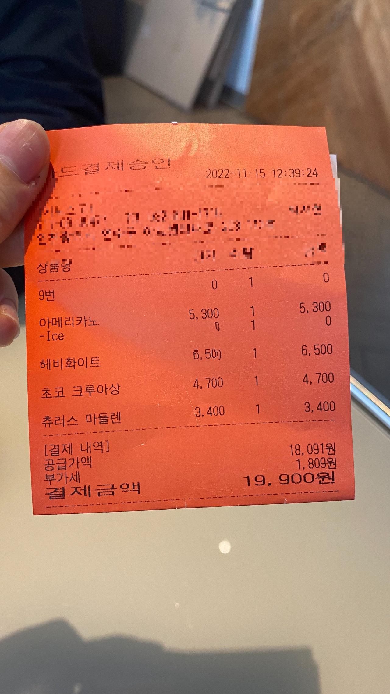 저희가 시킨 커피는 아메리카노, 헤비화이트 입니다!