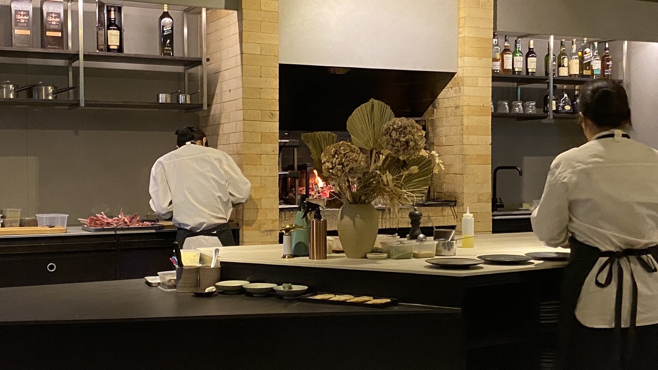 키친을 중심으로 가깝게 테이블이 있고