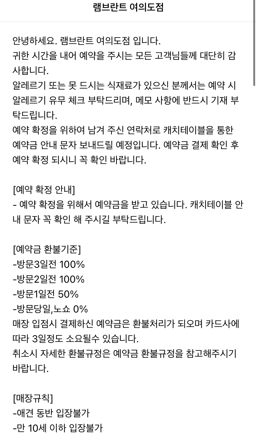 제가 다녀온 곳은 램브란트 여의도점인데