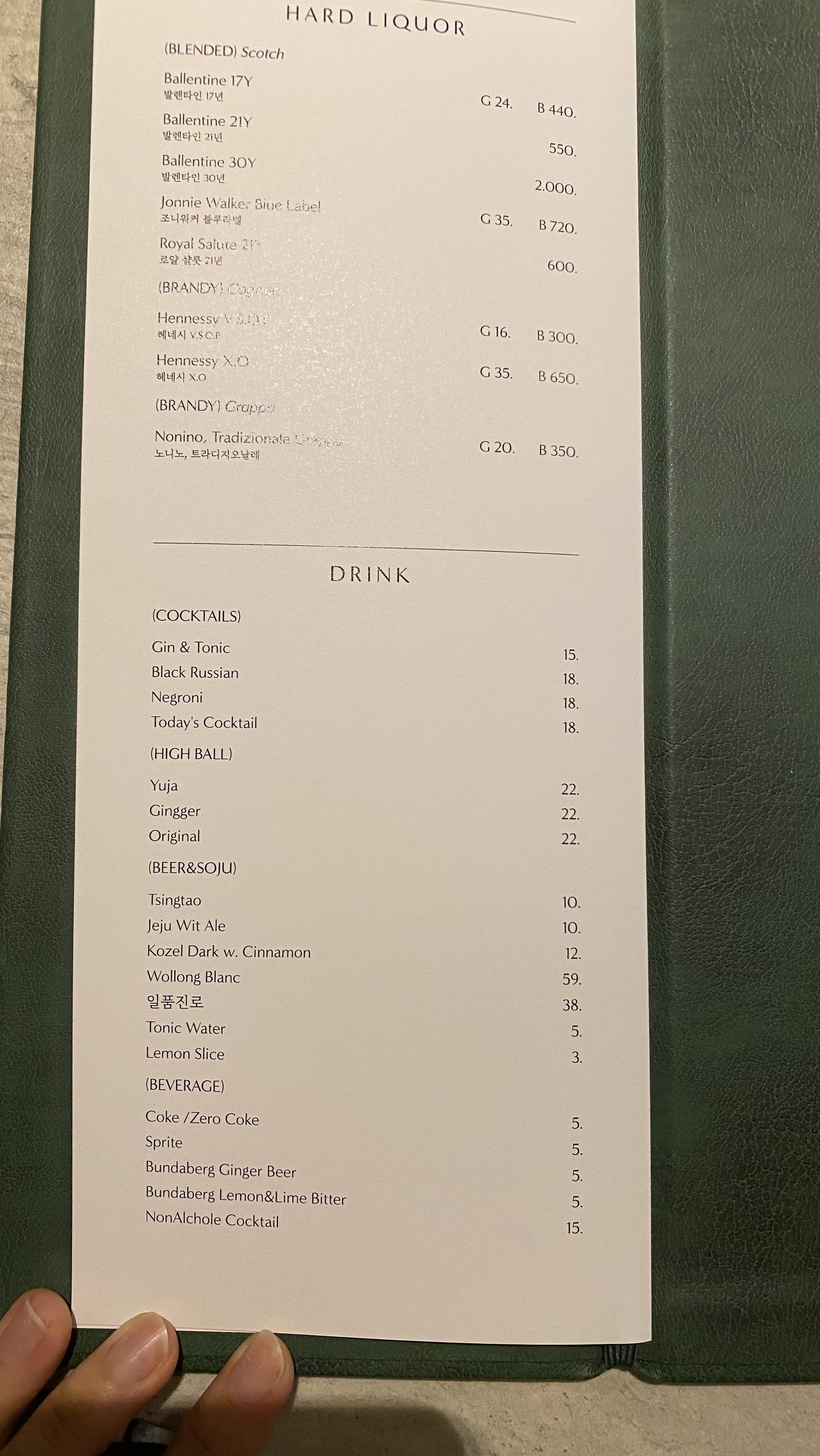 주류 메뉴입니다