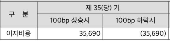 사업보고서에 따르면 회사는 이자율의 등락에 따라 이자비용에 영향을 받을 수 있고, 그 계산은 아래와 같다.