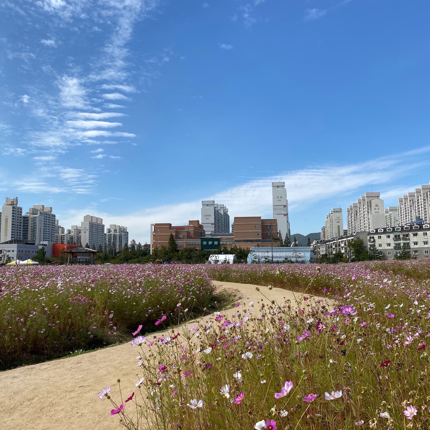 코스모스로 가득 찬 사진들을 보며, 와이프가 제일 좋아하는 꽃이 코스모스인 것이 생각나 다음날 아침 바로 계양 꽃마루로 향했다.