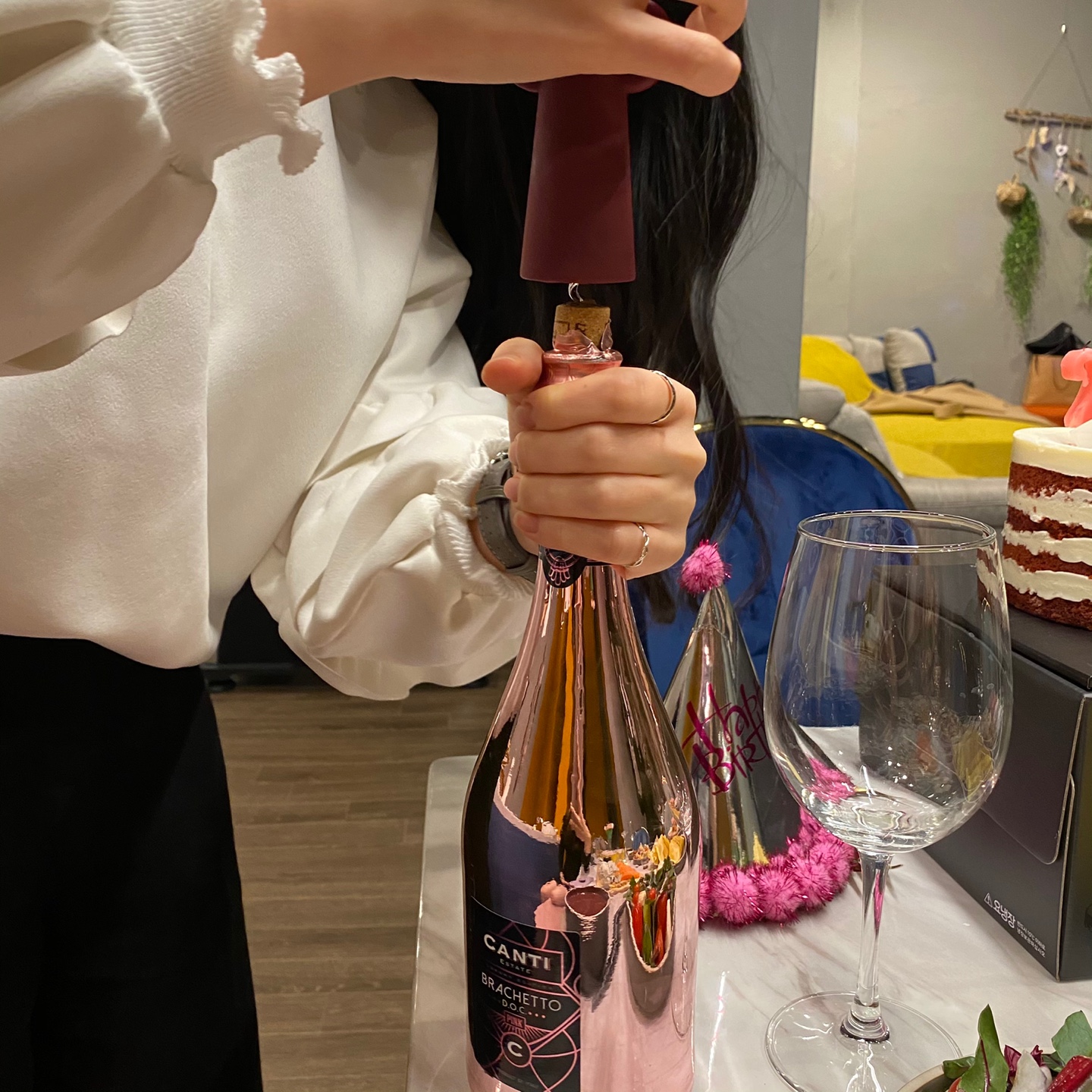 친구의 생일을 맞이해 파티룸을 빌렸고, 이 와인, 칸티 브라케토 럭셔리 에디션을 들고 갔다.